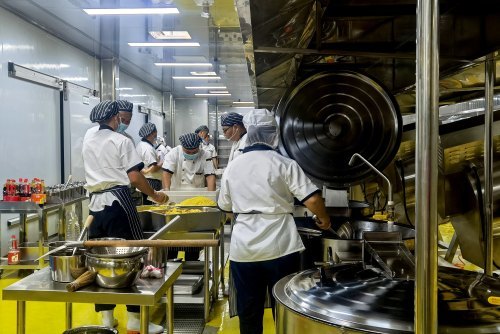 随行的负责人告诉记者,企业在生产流程安全管理、食品安全和卫生管理、以及餐具的消毒方面的管理都非常严格,从原材料的集中采购上,要做到索票验证采购,品控部做严格的农残以及瘦肉精的检测,最后加工出来的食物还要经过微生物、金属等检测,合格以后才能出库。