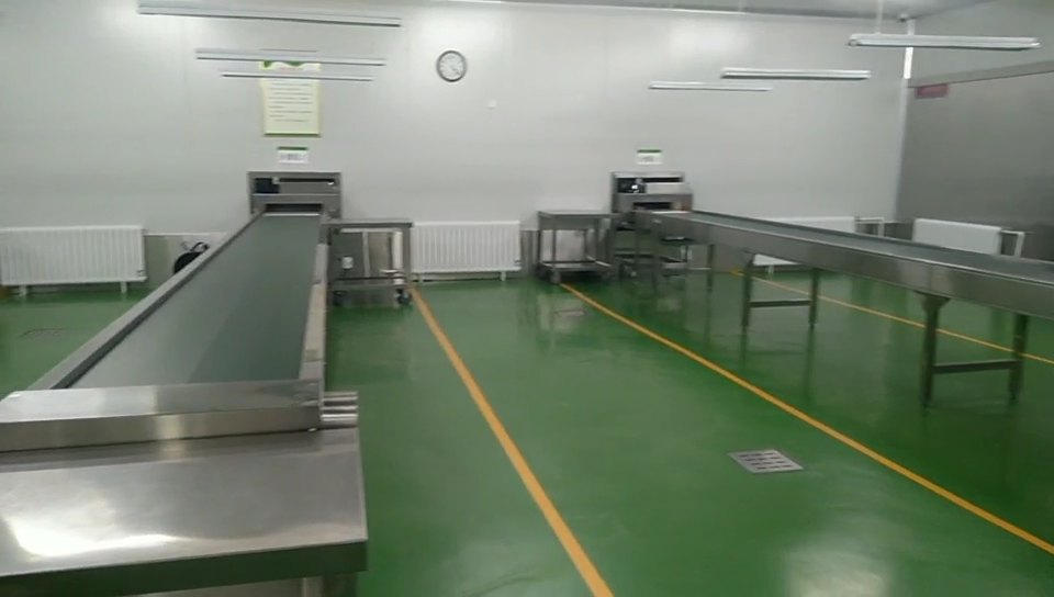 设备:新兴荣福分餐线、无动力滚轴、活动双层工作台、挂墙洗手池、冲地龙头等。