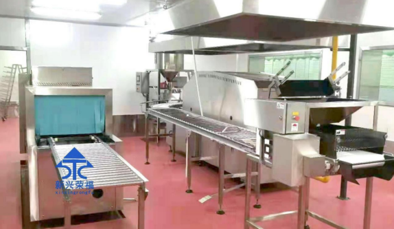 特别选用了新兴荣福央厨设备制造的自动化的炒菜机、油炸机等央厨先进设备,能精准的控制热炒时温度、时间及用料量,另外,特配的配套料理包,能确保菜品的统一标准化、最大限度的减少营养的损失,最终能确保学生餐的健康、安全、营养。