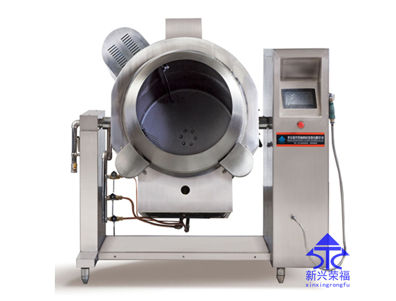 4、锅体沿水平轴旋转,由锅内的搅拌叉拨动菜肴做刮上抛下运动,机械自动翻炒, 可通过变频器调速,提高翻炒速度。