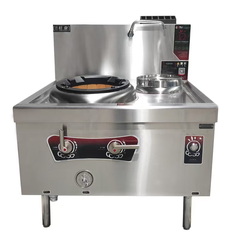 (2)炉外结构选用优质不锈钢板,上设优质摇摆水龙头,可配置炸筐架及不锈钢调料板,并可根据需要订做,可设计自然风式。